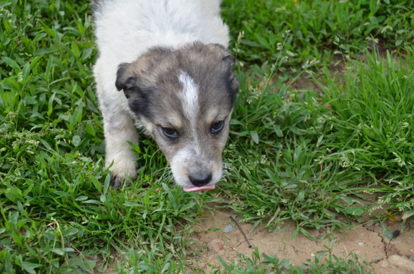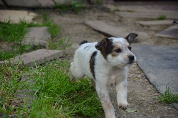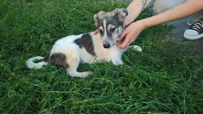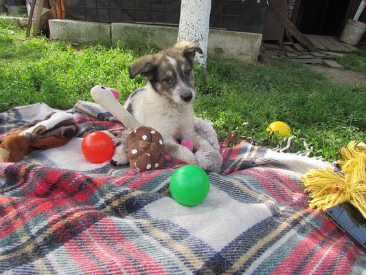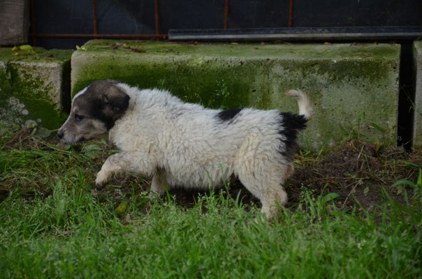 Kimmy kommt zusammen mit ihren 6 Geschwistern aus dem PS in Brasov. Wir erhielten einen Hilferuf ob wir die 7 kleinen Fellnasen übernehmen können, klar haben wir keine Sekunde gezögert und so wurden es 7 kleine Mogli-Zwerge. Die kleinen entwickelten sich prächtig, es sind aufgestellte und fröhliche kleine Rackers die unglaublichen Spass am Leben haben, einfach zum Verlieben. Als wir im Juni in Rumänien waren, durften wir die Kleinen als erstes bei Maria besuchen. Kimmy hatte da bereits eine Interessentin, Gaby hat sich bei uns gemeldet, sie hat sich gleich in zwei kleine Mädels verguckt, Fenja und Kimmy, sie bat uns ein Video von den beiden zu machen und wollte auch einige Infos über die Charaktereigenschaften. Natürlich nahmen wir uns für diese beiden etwas mehr Zeit. Fenja und Kimmy tobten auf der Wiese herum, sie sind beide voller Lebensfreude, wobei Kimmy die ruhigere von den beiden ist.