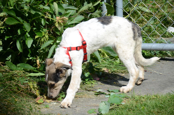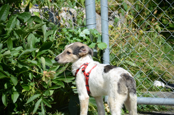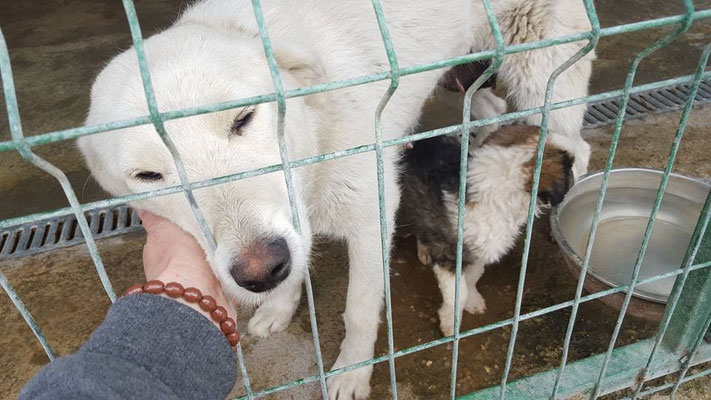 Auch Mala kam ganz neugierig an den Zaun und liess sich streicheln. Mala darf im Juli auch endlich Ausreisen, wir freuen uns sehr die tolle Maus bald in der Schweiz zu begrüssen.