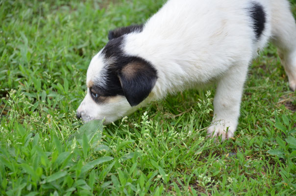 Mit ihren tapsigen Gang erkundet sie die Welt Schritt für Schritt. Natürlich braucht sie noch sehr viel Schlaf und Ruhepausen, denn das neue Leben zu erforschen ist ganz schön anstrengend. Auch das Hunde ABC muss noch sorgfältig gelernt werden und auch mit dem Stubenrein klappt es noch nicht immer so gut. Halt ein junges witziges Hundemädchen. Ausgewachsen wird Toffi eine mittlere Grösse erreichen ca. 46-50 cm Schulterhöhe.