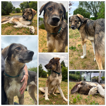 Ahanu ist im Januar 2022 geboren und hat eine Schulterhöhe von 62cm. Aktuell wiegt er um die 20 Kilo, dürfte aber für sein Idealgewicht noch 2-3 Kilo zulegen.
