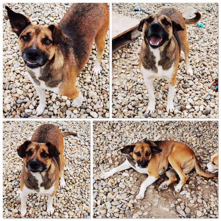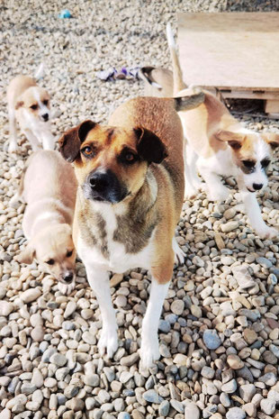 Syena kam im Februar 2023 mit ihren fünf Welpen Hope, Lotta, Larry, Milo und Kuno zu uns in die Auffangstation. Ein Ehepaar vom Nachbarsdorf brachte uns die kleine Familie vorbei. Syena lebte auf der Strasse und ist ihnen zugelaufen. Leider wurden drei weitere Welpen von anderen Hunden bereits getötet.