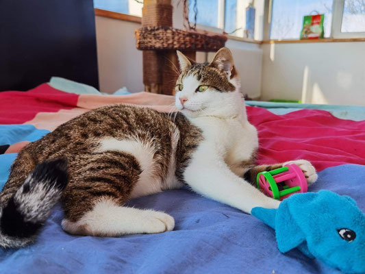 Da sich Benni Artgenossen gegenüber eher dominant verhält, suchen wir für den hübschen Kerl ein liebevolles Zuhause als Einzelprinz bei Menschen mit sehr viel Zeit zum Schmusen. Aufgrund seinem Handicap vermitteln wir Benni nur mit gesichertem Auslauf (Balkon oder Garten).