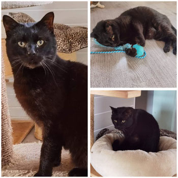 Jalon hat sich bei uns sehr gut erholt. Sein Fell glänzt wieder und schimmert je nach Lichteinfall bräunlich. Jalon ist ein riesen Schatz! Er ist ein unglaublich anhänglicher und verschmuster Kater. Er geniesst die Streicheleinheiten und Aufmerksamkeit der Menschen sehr. Mit seinen Artgenossen versteht er sich ebenfalls sehr gut und verhält sich allen gegenüber sehr sozial.