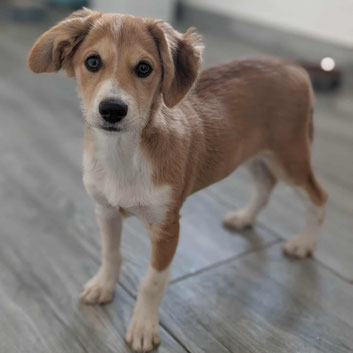 Ihre Mami Lucy ist eine Strassenhündin, die wir Anfang Juni 2025 hochträchtig bei uns aufgenommen haben. Blümchen ist ein paar Tage später bei uns in der Auffangstation geboren. Ihre Geschwister sind Buddy, Yoshi, Tapani, Somara, Hidi und Hailey.