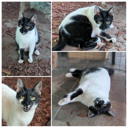 Im Oktober 2024 hat Diamond ganz alleine am Strassenrand auf uns "gewartet". Eine so kleine Katze, mit einem speziellen Gangbild, Stummelschwänzchen und sichtlich krank, konnten wir nicht zurücklassen. Wir haben sie in die Klinik gebracht und durfte dann bei uns in der Auffangstation bleiben.
